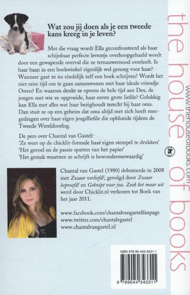 Wat zou jij doen als je een tweede kans kreeg in je leven? Met die vraag wordt Ella geconfronteerd als haar schijnbaar perfecte leventje overhoopgehaald wordt door een gewapende overval die ze ternauwernood overleeft. Is haar baan in een boekwinkel eigenlijk wel genoeg voor haar? Wanneer gaat ze nu eindelijk zelf een boek schrijven? Wordt het niet eens tijd om te gaan samenwonen met haar ideale vriendje Owen? En waarom denkt ze opeens de hele tijd aan Dex, de jongen met wie ze opgroeide, haar eerste grote liefde? Gelukkig kan Ella met alles wat haar bezighoudt terecht bij haar oma. Dan stuit ze op een geheim dat oma altijd met zich heeft meegedragen over haar eigen jeugdliefde.
