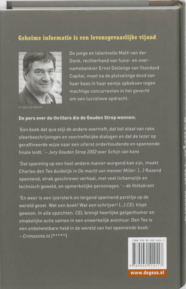 Met die transactie dreigt Dellenge zijn hand te overspelen. Via slinkse deals en het achterhouden van informatie moet hij zich staande houden. In het heetst van de strijd overlijdt Dellenge onder verdachte omstandigheden. Zijn talentvolle medewerkster Matti van der Donk neemt de opdracht over en komt terecht in een spel rond macht en geld.