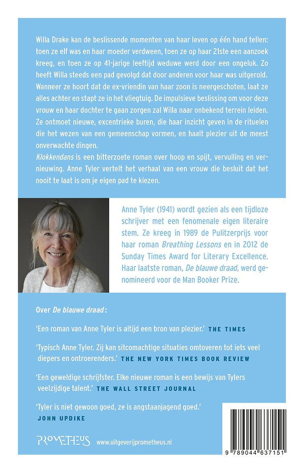 Klokkendans is een bitterzoete roman over hoop en spijt, vervulling en vernieuwing. Anne Tyler vertelt het verhaal van een vrouw die besluit dat het nooit te laat is om je eigen pad te kiezen.