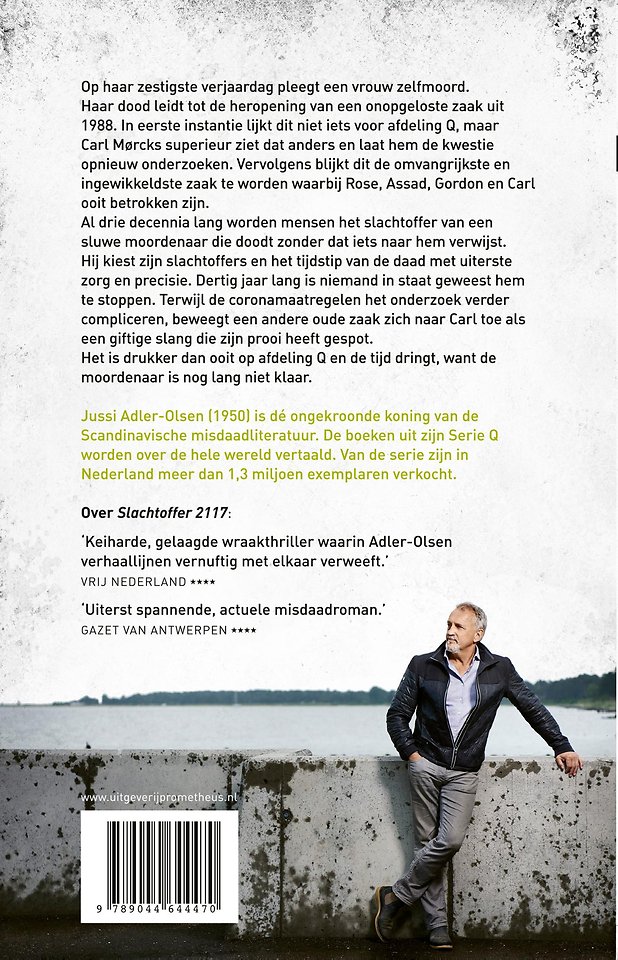 Jussi Adler-Olsen (1950) is dé ongekroonde koning van de Scandinavische misdaadliteratuur. De boeken uit zijn Serie Q worden over de hele wereld vertaald. Van de serie zijn in Nederland meer dan 1,3 miljoen exemplaren verkocht.