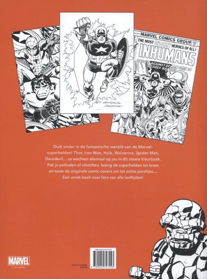 Duik onder in de fantastische wereld van de Marvel-superhelden! Thor, Iron Man, Hulk, Wolverine, Spider-Man, Daredevil… ze wachten allemaal op jou in dit prachtige kleurboek. Pak je potloden of viltstiften, breng de superhelden tot leven en tover de originele comic-covers om tot echte pareltjes… Een uniek boek voor fans van alle leeftijden!