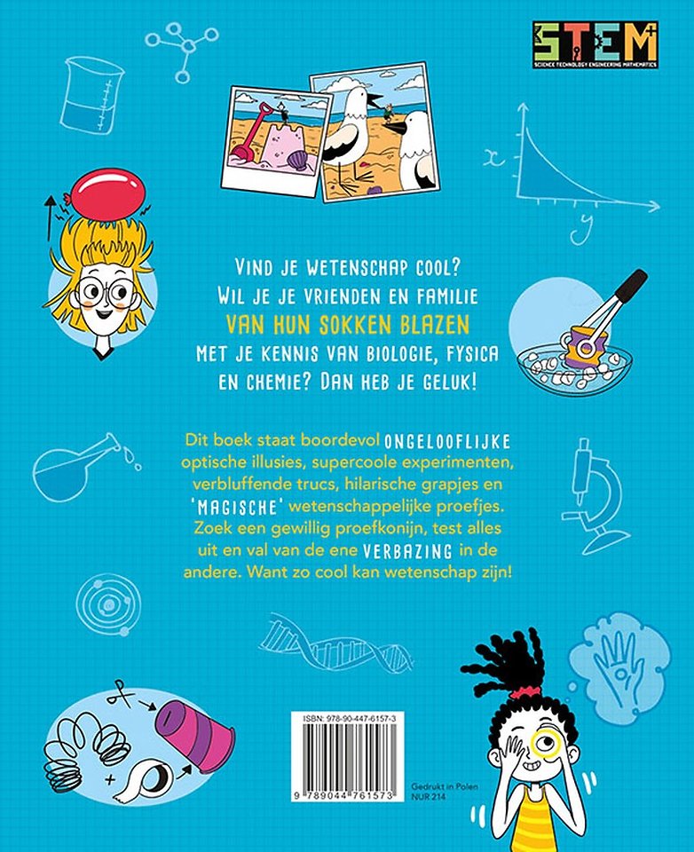 Vind je wetenschap cool? Wil je je vrienden en familie van hun sokken blazen met je kennis van biologie, fysica en chemie? Dan heb je geluk! Dit boek staat boordevol ongelooflijke optische illusies, supercoole experimenten, stiekeme trucs, hilarische grapjes en 'magische' wetenschappelijke proefjes. Zoek een gewillig proefkonijn, test alles uit en val van de ene verbazing in de andere. Want zo leuk kan wetenschap zijn!