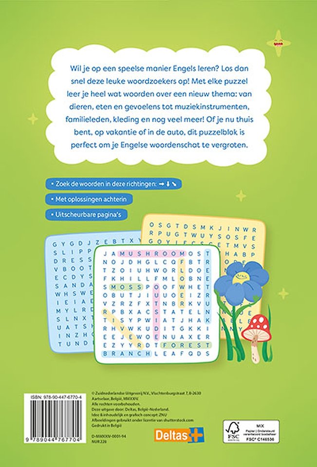 Wil je op een speelse manier Engels leren? Los dan snel deze leuke woordzoekers op! Met elke puzzel leer je heel wat woorden over een nieuw thema: van dieren, eten en gevoelens tot muziekinstrumenten, familieleden, kleding en nog veel meer! Of je nu thuis bent, op vakantie of in de auto, dit puzzelblok met uitscheurbare pagina's is perfect om je Engelse woordenschat te vergroten.