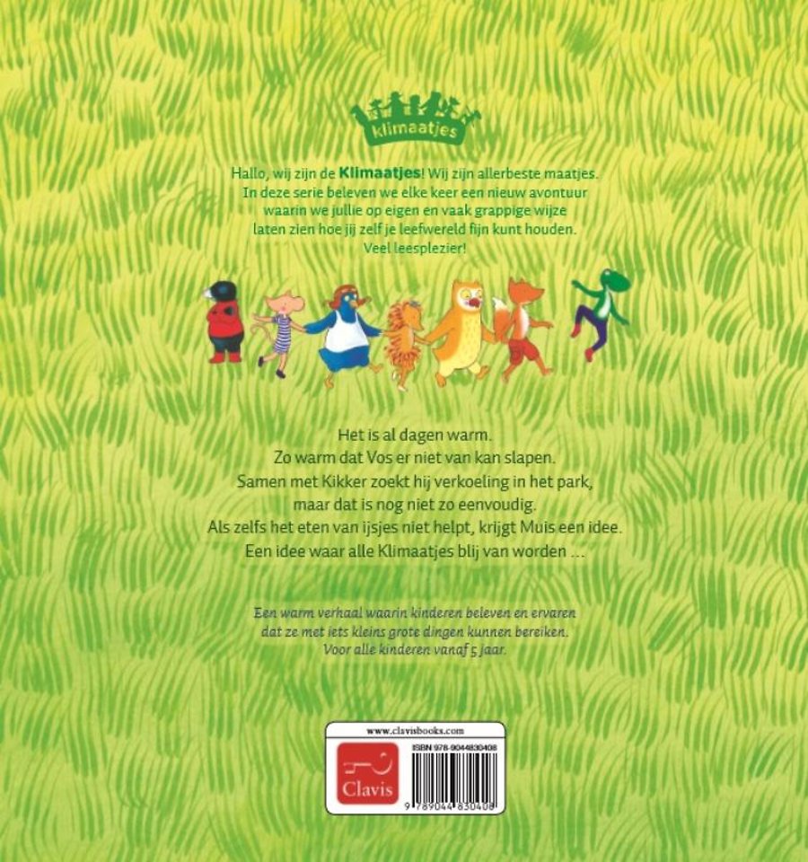 Het is al dagen warm. Zo warm dat Vos er niet van kan slapen. Samen met Kikker zoekt hij verkoeling in het park, maar dat is nog niet zo eenvoudig. Als zelfs het eten van ijsjes niet helpt, krijgt Muis een idee. Een idee waar alle Klimaatjes blij van worden ...