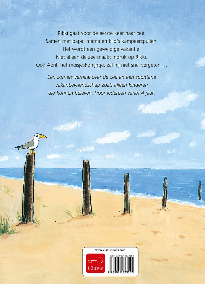 Rikki gaat voor de eerste keer naar zee. Samen met papa, mama en kilo’s kampeerspullen. Het wordt een geweldige vakantie. Niet alleen de zee maakt indruk op Rikki. Ook Abril, het meisjeskonijntje, zal hij niet snel vergeten …