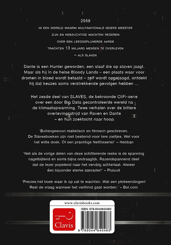 Het zesde deel van SLAVES, de bekroonde CliFi-serie over een door Big Data gecontroleerde wereld na de klimaatopwarming. Twee verhalen over de bittere overlevingsstrijd van Raven en Dante – en hun zoektocht naar hoop.