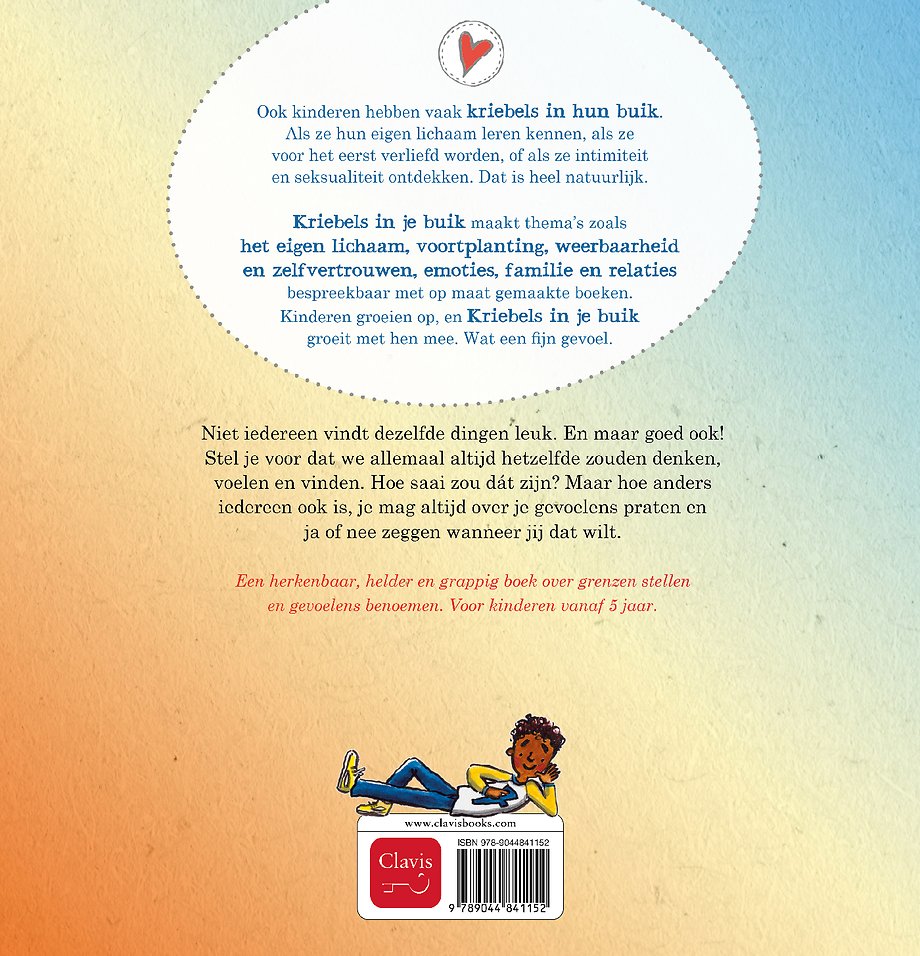 Kriebels in je buik maakt thema’s zoals het eigen lichaam, voortplanting, weerbaarheid en zelfvertrouwen, emoties, familie en relaties bespreekbaar met op maat gemaakte boeken. Kinderen groeien op, en Kriebels in je buik groeit met hen mee. Wat een fijn gevoel.