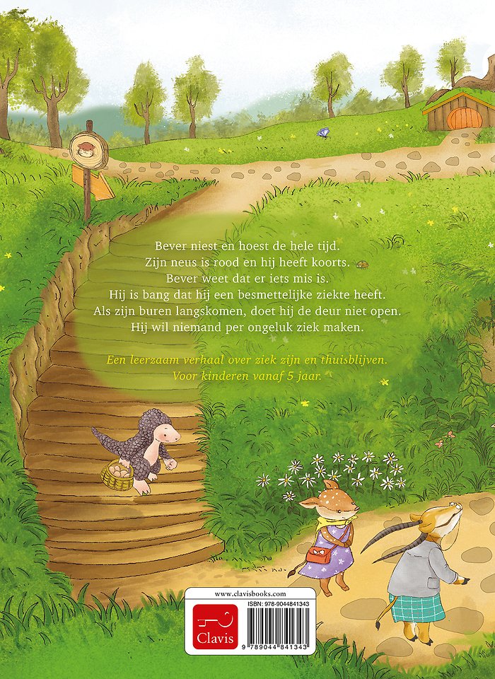 Bever niest en hoest de hele tijd. Zijn neus is rood en hij heeft koorts. Bever weet dat er iets mis is. Hij is bang dat hij een besmettelijke ziekte heeft. Als zijn buren langskomen, doet hij de deur niet open. Hij wil niemand per ongeluk ziek maken.