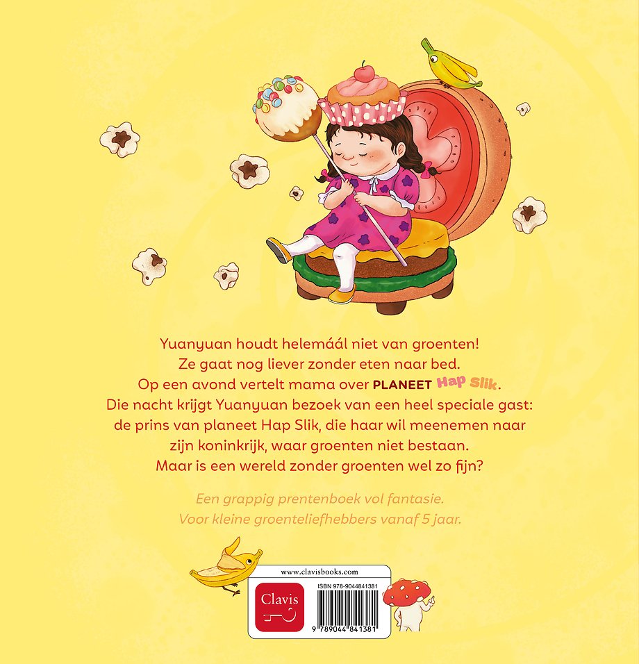Yuanyuan houdt helemáál niet van groenten! Ze gaat nog liever zonder eten naar bed. Op een avond vertelt mama over planeet Hap Slik. Die nacht krijgt Yuanyuan bezoek van een heel speciale gast: de prins van planeet Hap Slik, die haar wil meenemen naar zijn koninkrijk, waar groenten niet bestaan. Maar is een wereld zonder groente wel zo fijn?