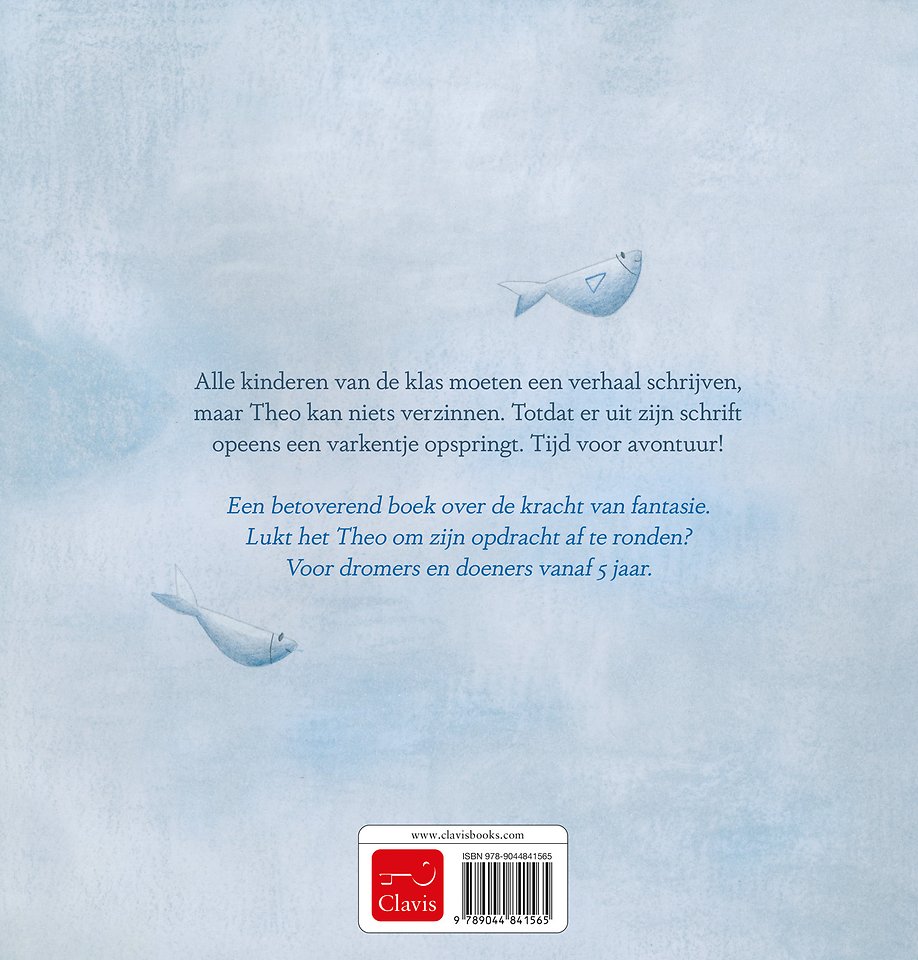 Alle kinderen van de klas moeten een verhaal schrijven, maar Theo kan niets verzinnen. Totdat er uit zijn schrift opeens een varkentje opspringt. Tijd voor avontuur!