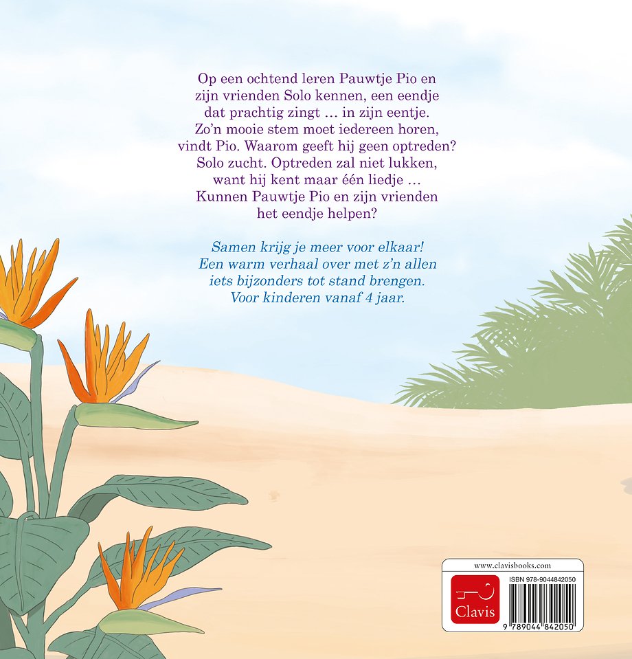 Op een ochtend leren Pauwtje Pio en zijn vrienden Solo kennen, een eendje dat prachtig zingt … in zijn eentje. Zo’n mooie stem moet iedereen horen, vindt Pio. Waarom geeft hij geen optreden? Solo zucht. Optreden zal niet lukken, want hij kent maar één liedje … Kunnen Pauwtje Pio en zijn vrienden het eendje helpen?