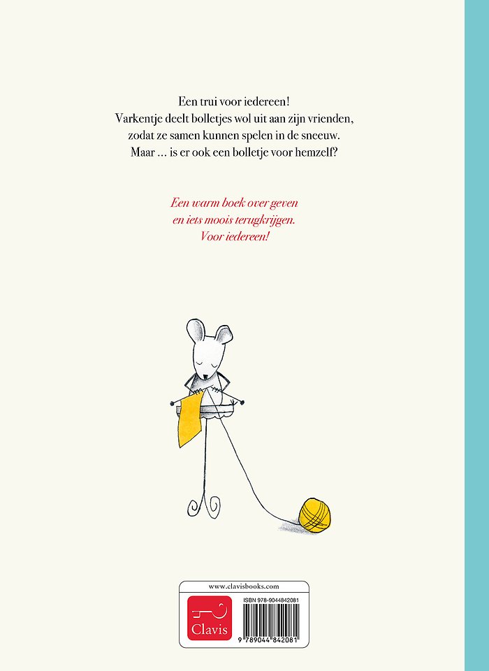 Een trui voor iedereen! Varkentje deelt bolletjes wol uit aan zijn vrienden, zodat ze samen kunnen spelen in de sneeuw. Maar... is er ook een bolletje voor hemzelf?