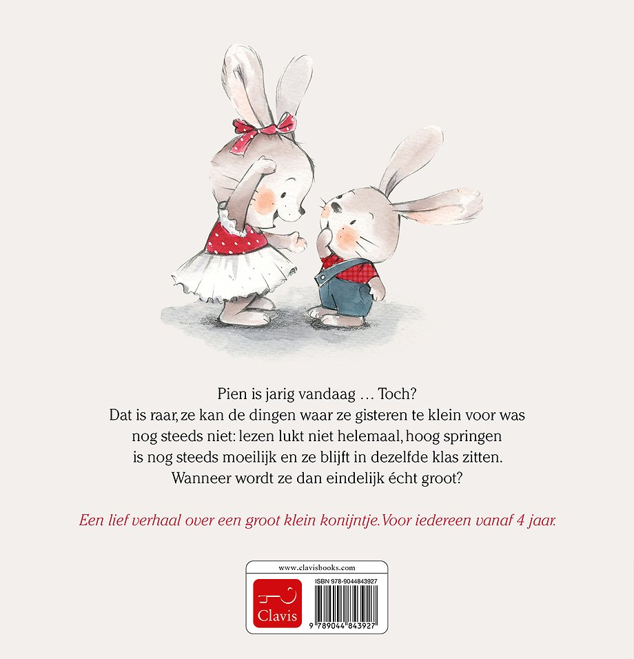 Pien is jarig vandaag … Toch? Dat is raar, ze kan de dingen waar ze gisteren te klein voor was nog steeds niet: lezen lukt niet helemaal, hoog springen is nog steeds moeilijk en ze blijft in dezelfde klas zitten. Wanneer wordt ze dan eindelijk écht groot?