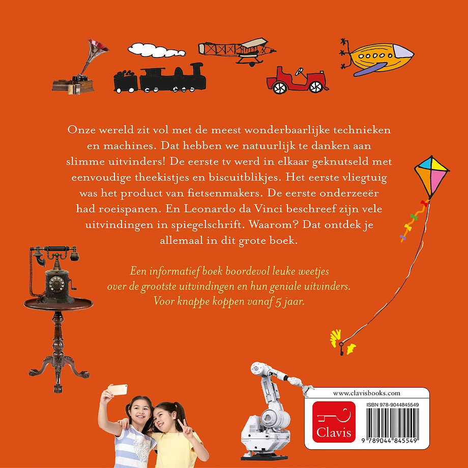 Onze wereld zit vol met de meest wonderbaarlijke technieken en machines. Dat hebben we natuurlijk te danken aan slimme uitvinders! De eerste tv werd in elkaar geknutseld met eenvoudige theekistjes en biscuitblikjes. Het eerste vliegtuig was het product van fietsenmakers. De eerste onderzeeër had roeispanen. En Leonardo da Vinci beschreef zijn vele uitvindingen in spiegelschrift. Waarom? Dat ontdek je allemaal in dit grote boek.