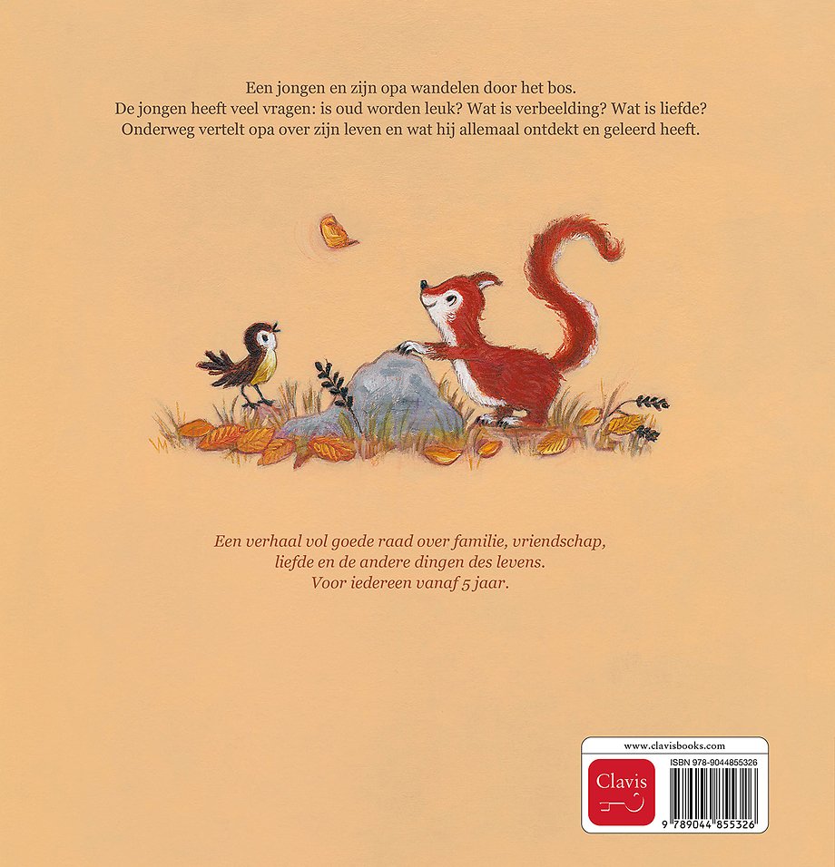 Een jongen en zijn opa wandelen door het bos. De jongen heeft veel vragen: is oud worden leuk? Wat is verbeelding? Wat is liefde? Onderweg vertelt opa over zijn leven en wat hij allemaal ontdekt en geleerd heeft.