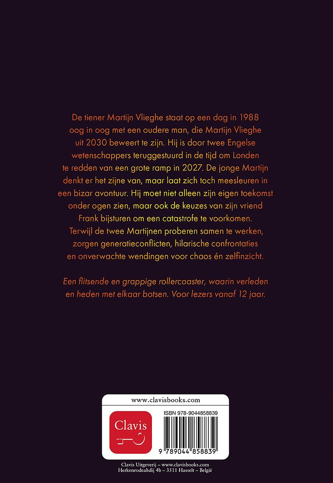 De tiener Martijn Vlieghe staat op een dag in 1988 oog in oog met een oudere man, die Martijn Vlieghe uit 2030 beweert te zijn. Hij is door twee Engelse wetenschappers teruggestuurd in de tijd om Londen te redden van een grote ramp in 2027. De jonge Martijn denkt er het zijne van, maar laat zich toch meesleuren in een bizar avontuur. Hij moet niet alleen zijn eigen toekomst onder ogen zien, maar ook de keuzes van zijn vriend Frank bijsturen om een catastrofe te voorkomen. Terwijl de twee Martijnen proberen samen te werken, zorgen generatieconflicten, hilarische confrontaties en onverwachte wendingen voor chaos én zelfinzicht.