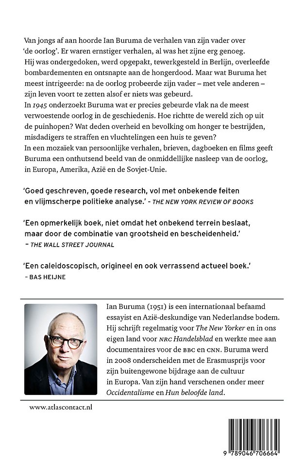 In 1945 onderzoekt Buruma wat er precies gebeurde vlak na de meest verwoestende oorlog in de geschiedenis. Hoe richtte de wereld zich op uit de puinhopen? Wat deden overheid en bevolking om honger te bestrijden, misdadigers te straffen en vluchtelingen een huis te geven?