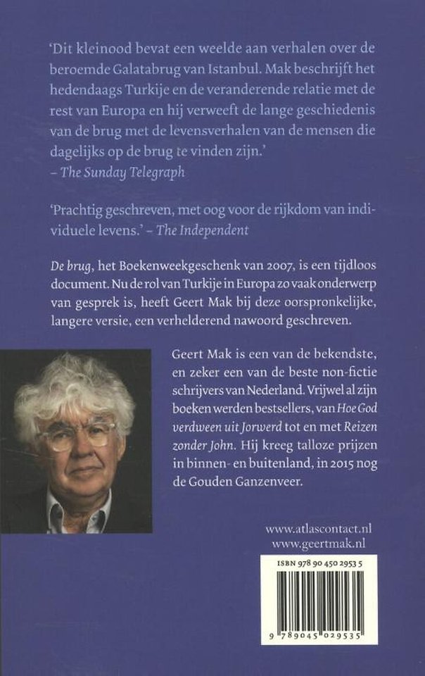 De brug, het Boekenweekgeschenk van 2007, is een tijdloos document. Nu de rol van Turkije in Europa zo vaak onderwerp van gesprek is, heeft Geert Mak bij deze oorspronkelijke, langere versie, een verhelderend nawoord geschreven.