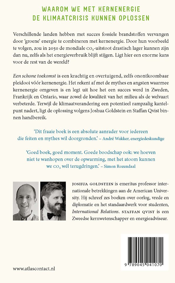 Een schone toekomst is een krachtig en overtuigend, ja zelfs onontkoombaar pleidooi vóór kernenergie. Het rekent af met de mythes en angsten waarmee die omgeven is en legt uit hoe kernenergie een succes werd in Zweden, Frankrijk en Ontario, terwijl zowel de welvaart als de kwaliteit van het milieu verbeterde. Terwijl de klimaatverandering een potentieel rampzalig kantelpunt nadert, ligt de oplossing volgens de auteurs binnen handbereik.