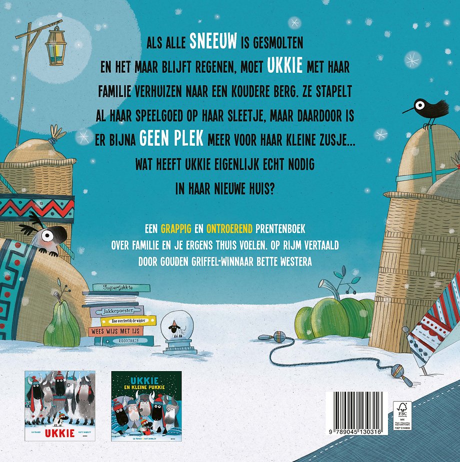 Als de sneeuw smelt en het steeds meer begint te regenen, moeten Ukkie en haar familie verhuizen naar een koudere berg. Ukkie wil al haar spullen meenemen op haar slee. Maar die is daardoor zo vol dat haar kleine zusje Pukkie er onderweg vanaf valt. Zal Ukkie inzien dat thuis zoveel meer is dan de spullen die erin staan?