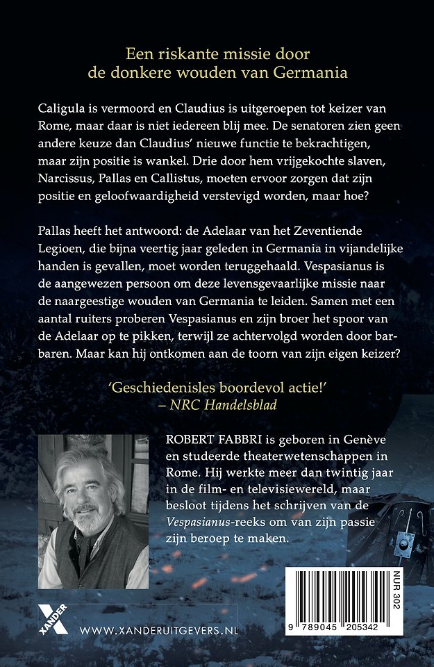 Pallas heeft het antwoord: de Adelaar van het Zeventiende Garnizoekn, die bijna veertig jaar daarvoor in Germania in vijandelijke handen is gevallen, terughalen. Wie anders dan Vespasianus zou zo'n gevaarlijke missie naar de naargeestige wouden van Germania moeten leiden? Samen met een aantal ruiters, proberen Vespasianus en zijn broer het spoor van de Adelaar op te pikken.