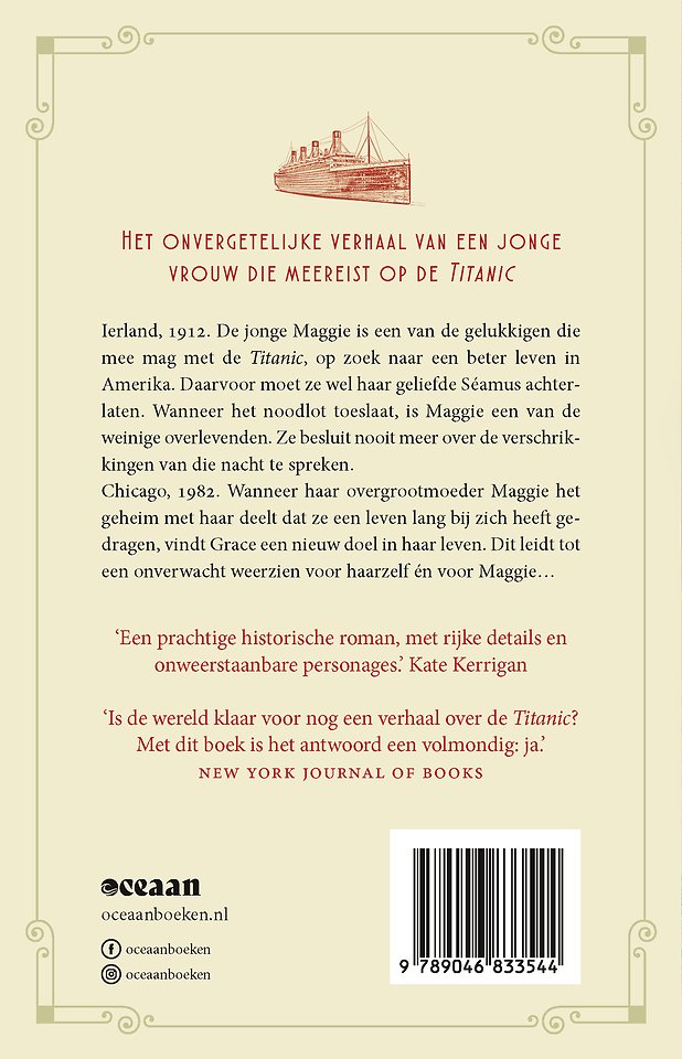 Ierland, 1912. De jonge Maggie is een van de gelukkigen die mee mag met de Titanic, op zoek naar een beter leven in Amerika. Daarvoor moet ze wel haar geliefde Séamus achterlaten. Wanneer het noodlot toeslaat, is Maggie een van de weinige overlevenden. Ze besluit nooit meer over de verschrikkingen van die nacht te spreken.