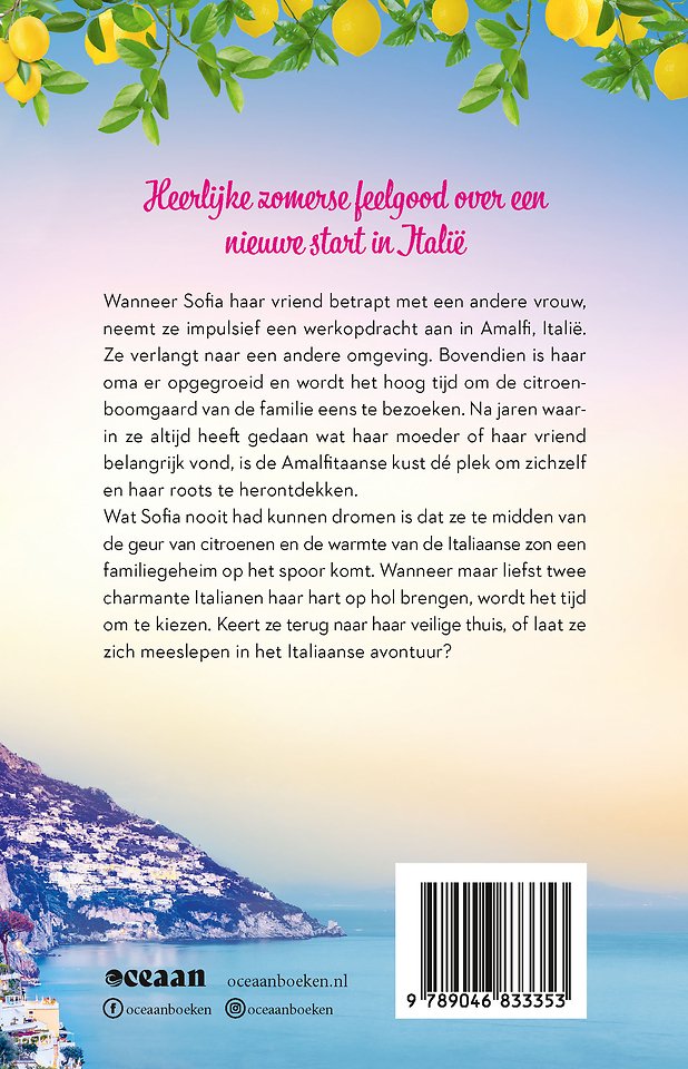 Wat Sofia nooit had kunnen dromen is dat ze te midden van de geur van citroenen en de warmte van de Italiaanse zon een familiegeheim op het spoor komt. Wanneer maar liefst twee charmante Italianen haar hart op hol brengen, wordt het tijd om te kiezen. Keert ze terug naar het veilige Nederland, of laat ze zich meeslepen in het Italiaanse avontuur?