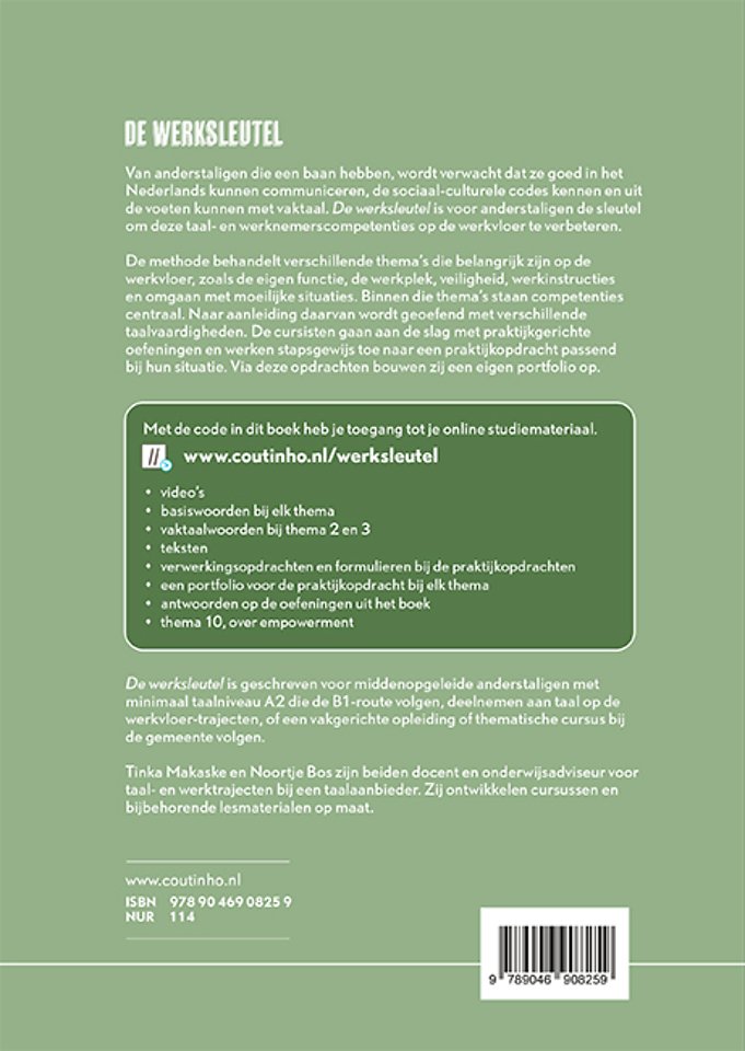 De Werksleutel is geschreven voor middenopgeleide anderstaligen met minimaal taalniveau A2 die de B1-route volgen, deelnemen aan taal op de werkvloer-trajecten, of een thematische cursus bij de gemeente of vakgerichte opleiding volgen.