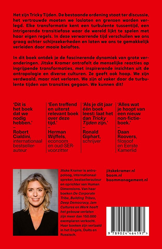 Jitske Kramer is antropoloog, internationaal spreker, bestsellerauteur en oprichter van Human Dimensions. Van haar boeken De Corporate Tribe, Building Tribes, Deep Democracy, Jam Cultures, Wow! Wat een verschil, Voodoo, Werk heeft het gebouw verlaten enTricky Tijden zijn meer dan 150.000 exemplaren verkocht. Haar boeken zijn vertaald in het Engels, Duits en Russisch.