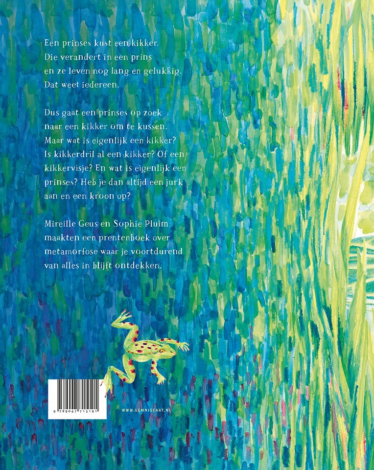 De prinses in Is dit een kikker? gaat eropuit om zo’n prins te vinden. Maar wat is nou eigenlijk een kikker? Is kikkerdril al een kikker, of een kikkervisje? En als je dan zo’n kikker vindt… Is het dan wel de juiste kikker?