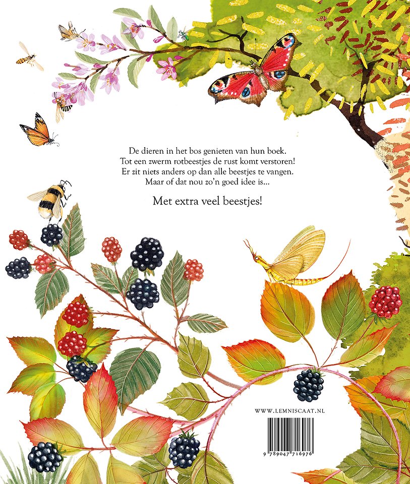 Het zal je maar overkomen: lees je net op je gemak een boek voor, zoemt er ineens zo’n irritante vlieg om je oren. En dan blijkt het er niet één te zijn, maar een hele zwerm! Het overkomt de das Piet en zijn bosvrienden. De vliegen zetten het hele bos op z’n kop en jagen alle dieren op. Rotbeestjes! Die moeten gevangen worden. Maar als er geen insecten meer in het bos zijn, wie ruimt dan de poep op? Kan er dan nog wel fruit groeien en kunnen de bloemen nog bloeien?