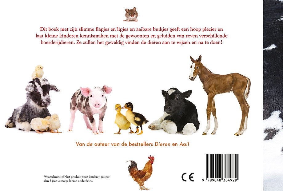 Dit boekje met zijn slimme flapjes en lipjes en aaibare buikjes geeft een hoop plezier en laat kleine kinderen kennismaken met de gewoonten en geluiden van zeven verschillende boerderijdieren. Ze zullen het geweldig vinden de dieren aan te wijzen en na te doen!