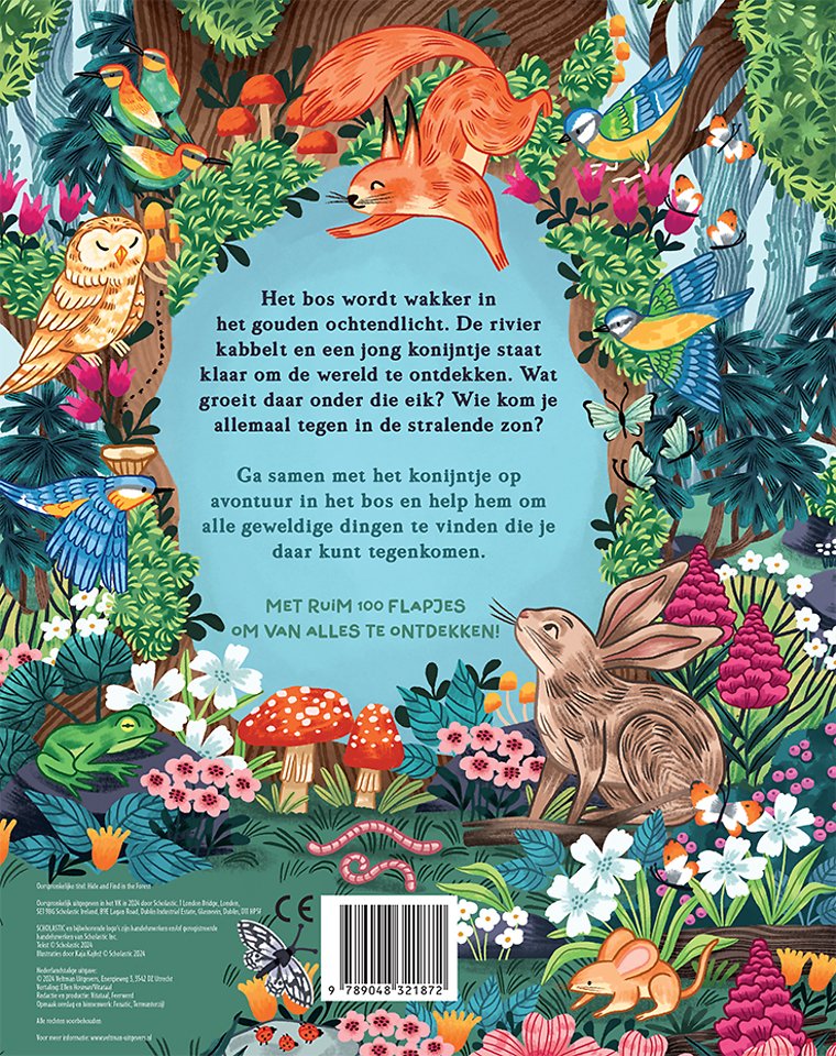 Het bos wordt wakker in het gouden ochtendlicht. De rivier kabbelt en een jong konijntje staat klaar om de wereld te ontdekken. Wat groeit daar onder die eik? Wie kom je allemaal tegen in de stralende zon?