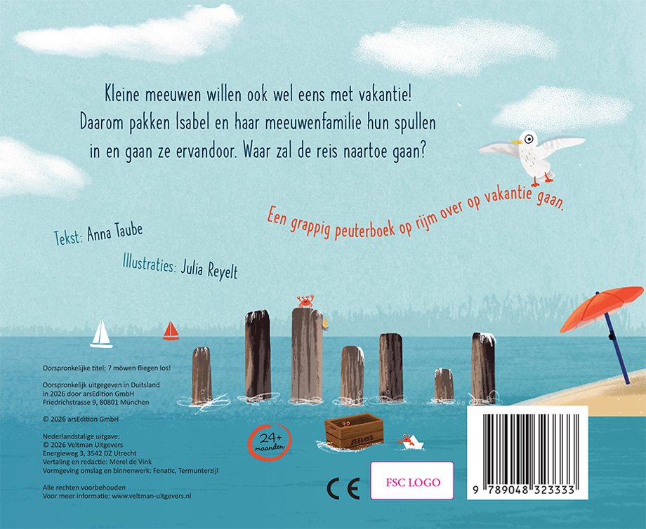 Kleine meeuwen willen ook wel eens met vakantie! Daarom pakken Isabel en haar meeuwenfamilie hun spullen in en gaan ze ervandoor. Waar zal de reis naartoe gaan?