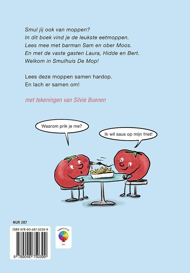Lach om de onhandige ober Moos, de kinderen Laura en Hidde en om Esma, de snelste koerier van de stad. Van lekkere moppen tot lastige raadsels en van grappige dialogen tot leuke strips. In dit toneellezen moppenboek op AVI M4 staan de leukste dialogen om samen hardop te lezen.
