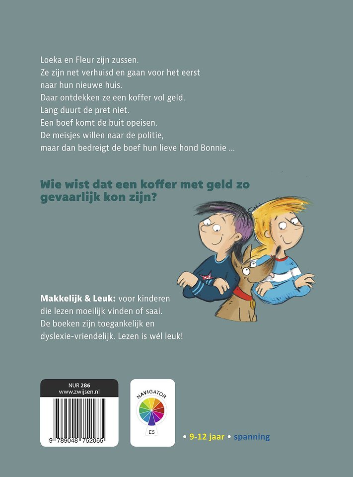 Wat zou jij doen met een miljoen? Fleur en Loeka vinden een koffer vol geld in het nieuwe huis van hun vader. Hoe komt dat geld daar en van wie is het? Je komt erachter in het boek ‘Buit gevonden’ uit de ‘Makkelijk en Leuk’ serie geschreven door Dirk Nielandt. Dit boek op AVI E5-niveau maakt lezen leuk voor kinderen van 9 tot 12 jaar met dyslexie of leesproblemen. Een spannend verhaal zorgt dat je wil blijven doorlezen, want hoe loopt het nou toch af met die koffer met geld? De illustraties van Richard Verschraagen trekken je nog verder mee in dit avontuur.
