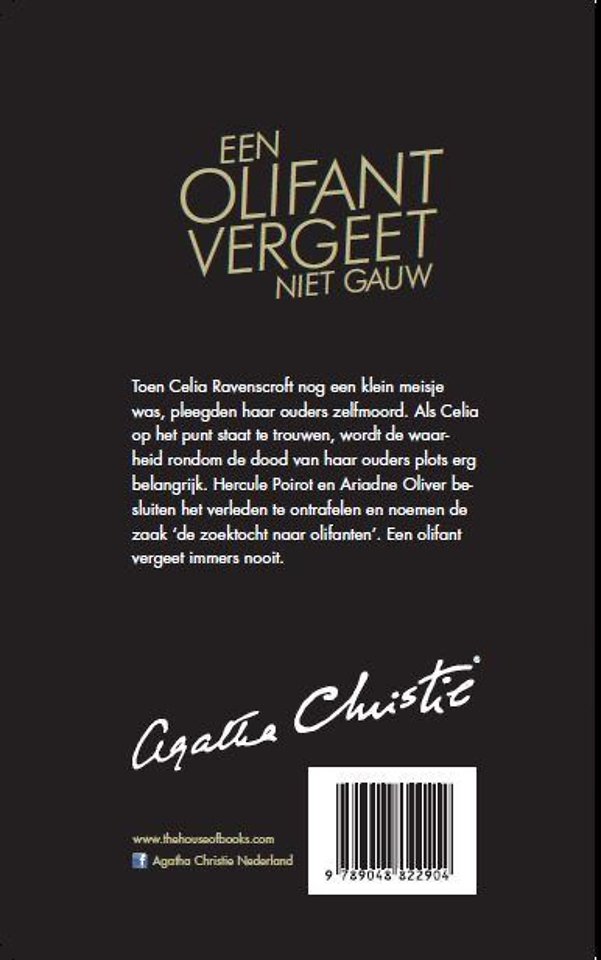 Toen Celia Ravenscroft nog een klein meisje was, pleegden haar ouders zelfmoord. Als Celia op het punt staat te trouwen, wordt de waarheid rondom de dood van haar ouders plots erg belangrijk. Hercule Poirot en Ariadne Oliver besluiten het verleden te ontrafelen en noemen de zaak ‘de zoektocht naar olifanten’. Een olifant vergeet immers nooit.