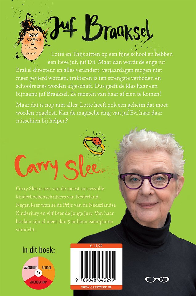 Lotte en Thijs zitten op een fijne school en hebben een lieve juf, juf Evi. Maar dan wordt de enge juf Brakel directeur en alles verandert: verjaardagen mogen niet meer gevierd worden, trakteren is ten strengste verboden en schoolreisjes worden afgeschaft. Dus geeft de klas haar een bijnaam: juf Braaksel. Ze moeten een plan bedenken om van die akelige juf Braaksel af te komen!
