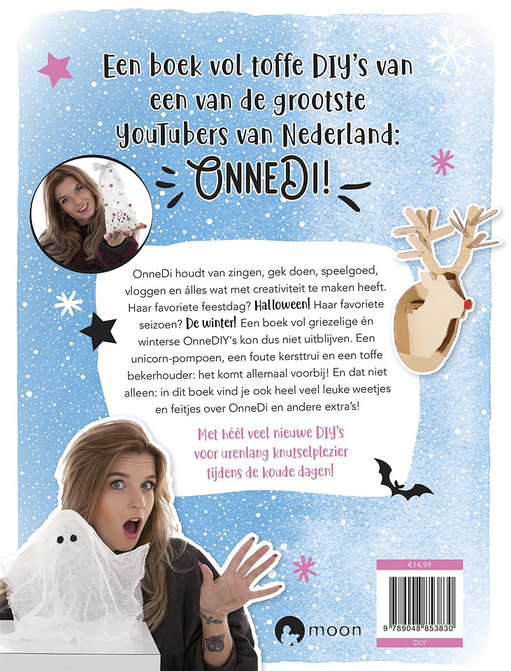 OnneDi houdt van zingen, gek doen, speelgoed, vloggen en álles wat met creativiteit te maken heeft. Haar favoriete feestdag? Halloween! Haar favoriete seizoen? De winter! Een boek vol griezelige én winterse ONNEDIY's kon dus niet uitblijven! Een unicorn pompoen, een foute kersttrui en een bekerhouder: het komt allemaal voorbij! En dat niet alleen: in dit boek vind je ook heel veel leuke weetjes en feitjes over OnneDi!