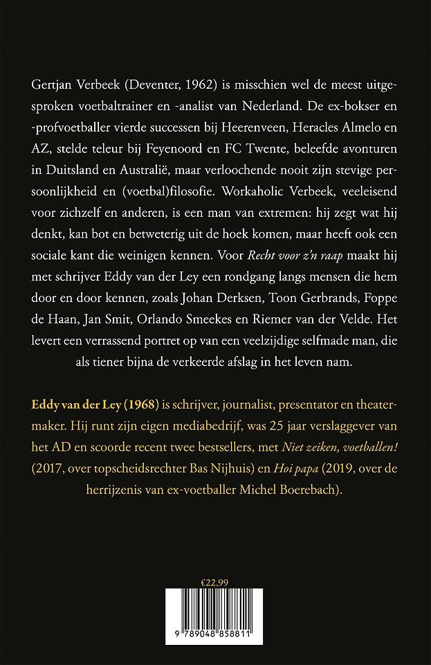 Gertjan Verbeek (Deventer, 1962) is misschien wel de meest uitgesproken voetbaltrainer en -analist van Nederland. De ex-bokser en -profvoetballer vierde successen bij Heerenveen, Heracles Almelo en AZ, stelde teleur bij Feyenoord en FC Twente, beleefde avonturen in Duitsland en Australië, maar verloochende nooit zijn stevige persoonlijkheid en (voetbal)filosofie.