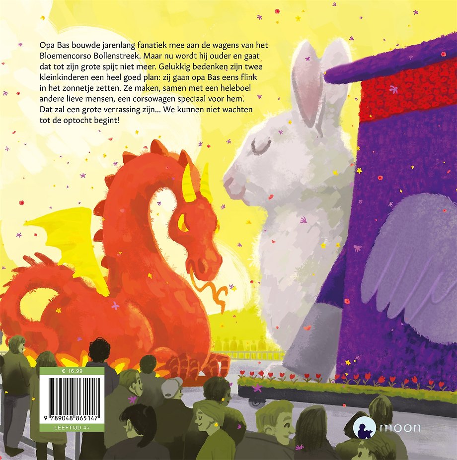 Opa Bas bouwde jarenlang fanatiek mee aan de wagens van het Bloemencorso Bollenstreek. Maar nu is hij oud en gaat dat tot zijn grote spijt niet meer. Gelukkig bedenken zijn twee kleinkinderen een heel goed plan: zij gaan opa Bas eens flink in het zonnetje zetten en maken, samen met een heleboel andere lieve mensen, een corsowagen speciaal voor hem. Dat zal een grote verrassing zijn... We kunnen niet wachten tot de optocht begint!