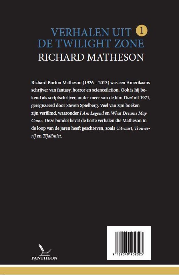 Richard Burton Matheson (1926 – 2013) was een Amerikaans schrijver van fantasy, horror en sciencefiction. Ook is hij bekend als scriptschrijver, onder meer van de film Duel uit 1971, geregisseerd door Steven Spielberg. Veel van zijn boeken zijn verfilmd, waaronder I Am Legend en What Dreams May Come. Deze bundel bevat de beste verhalen die Matheson in de loop van de jaren heeft geschreven, zoals Uitvaart, Trouwerij en Tijdlimiet.