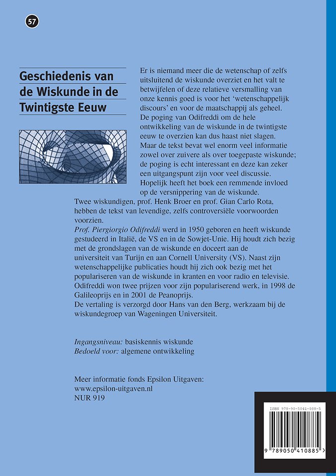 Er is niemand meer die de wetenschap of zelfs uitsluitend de wiskunde overziet en het valt te betwijfelen of deze relatieve versmalling van onze kennis goed is voor het 'wetenschappelijk discours' en voor de maatschappij als geheel. De poging van Odifreddi om de hele ontwikkeling van de wiskunde in de twintigste eeuw te overzien kan dus haast niet slagen. Maar de tekst bevat wel enorm veel informatie zowel over zuivere als over toegepaste wiskunde; de poging is echt interessant en deze kan zeker een uitgangspunt zijn voor veel discussie. Hopelijk heeft het boek een remmende invloed op de versnippering van de wiskunde.