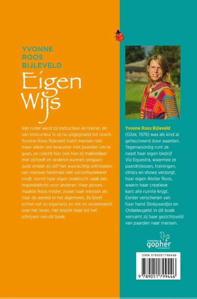 Van ruiter werd zij trainer, van trainer instructeur, en van instructeur is zij nu uitgegroeid tot coach. Yvonne Roos Bijleveld traint mensen niet meer alleen om met paarden om te gaan, ze coacht hen ook hoe zij makkelijker met zichzelf en anderen kunnen omgaan. Juist omdat zij zelf het waarachtig ontmoeten van mensen helemáál niet vanzelfsprekend vindt, vormt haar eigen zoektocht vaak een inspiratiebron voor anderen. Dat heeft haar niet minder eigenwijs gemaakt, wel milder, ten opzichte van mensen en tegenover de wereld in het algemeen.