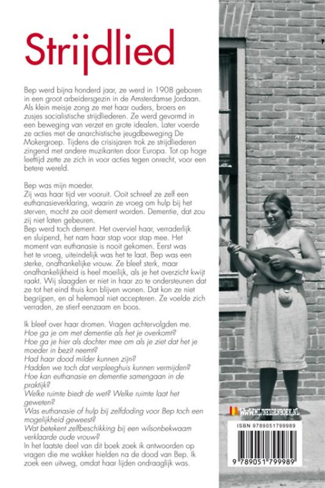 Bep werd toch dement. Het overviel haar, verraderlijk en sluipend, het nam haar stap voor stap mee. Het moment van euthanasie is nooit gekomen. Eerst was het te vroeg, uiteindelijk was het te laat. Bep was een sterke, onafhankelijke vrouw. Ze bleef sterk, maar onafhankelijkheid is heel moeilijk, als je het overzicht kwijt raakt. Wij slaagden er niet in haar zo te ondersteunen dat ze tot het eind thuis kon blijven wonen. Dat kon ze niet begrijpen, en al helemaal niet accepteren. Ze voelde zich verraden, ze stierf eenzaam en boos.