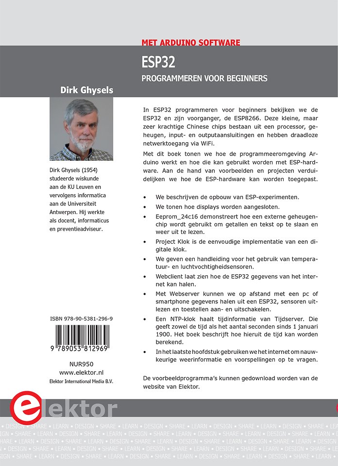Met dit boek tonen we hoe de programmeeromgeving Arduino werkt en hoe die kan gebruikt worden met ESP-hardware. Aan de hand van voorbeelden en projecten verduidelijken we hoe de ESP-hardware kan worden toegepast.