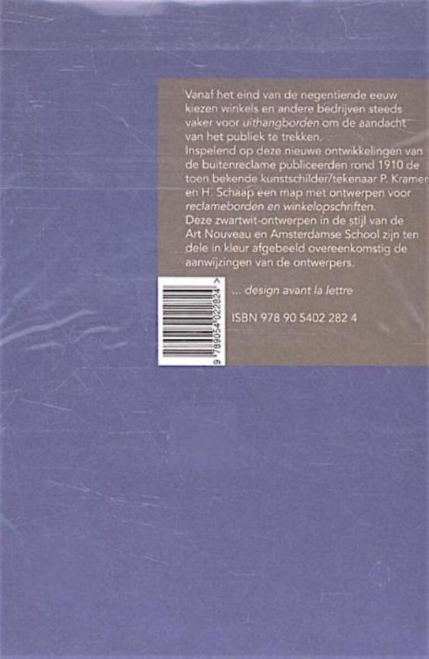 Inspelend op deze nieuwe ontwikkelingen van de buitenreclame publiceerden rond 1910 de toen bekende kunstschilder/tekenaar P/Kramer en H. Schaap een map met ontwerpen voor reclameborden en winkelopschriften.