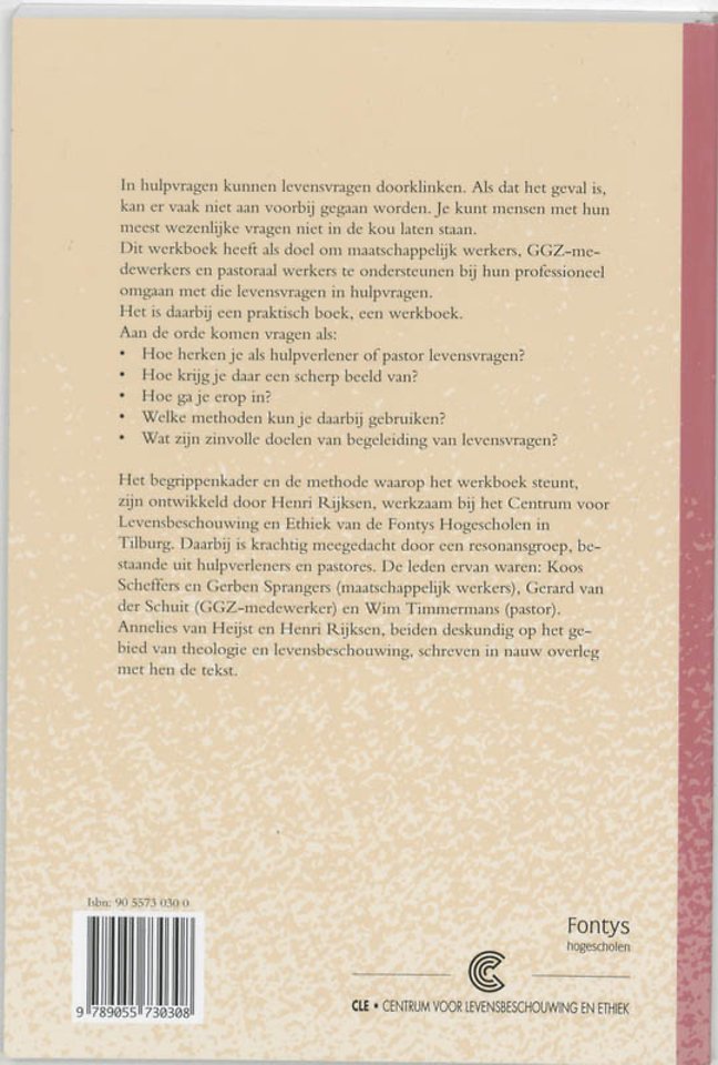 De gedachte die ten grondslag ligt aan dit boek is dat soms in de hulpvraag van mensen levensvragen doorklinken en dat het goed is om daarop in te gaan. Het boek is geschreven voor de hulpverlening én het pastoraat. Het is bedoeld voor maatschappelijk werkers (v/m), GGZ-medewerkers (v/m), priesters en dominees (v/m).