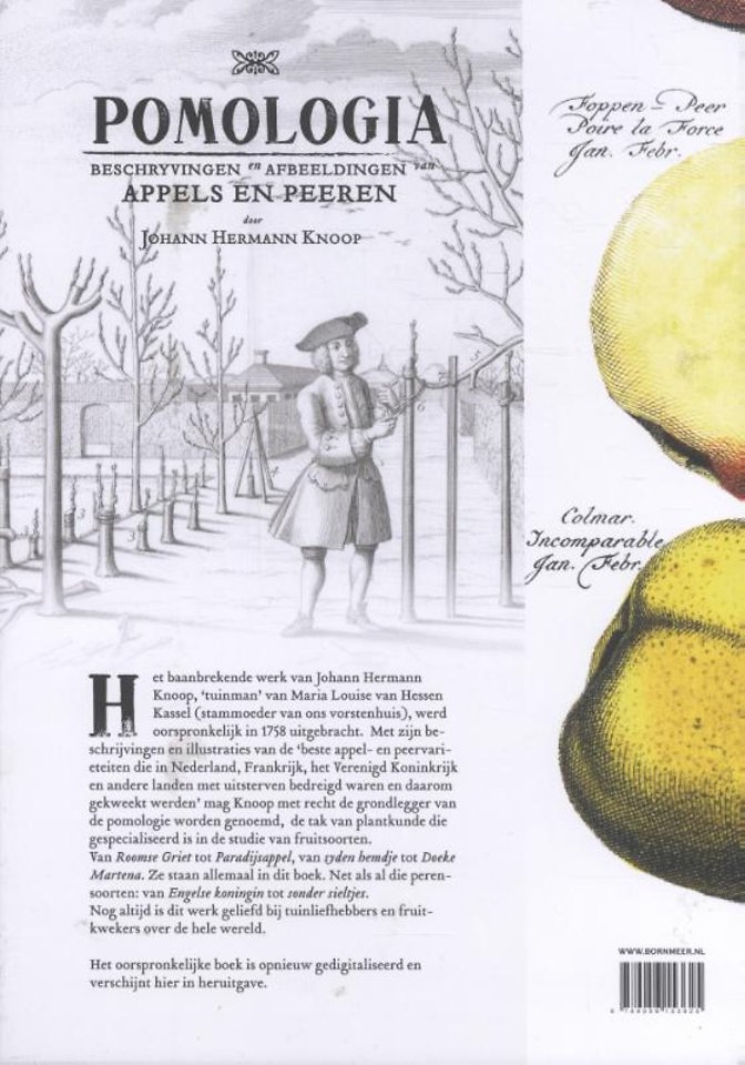 Het baanbrekende werk van Johann Hermann Knoop, 'tuinman' van Maria Louise van Hessen Kassel (stammoeder van ons vorstenhuis), werd oorspronkelijk in 1758 uitgebracht. Met zijn beschrijvingen en illustraties van de 'beste appel- en peervariëteiten die in Nederland, Frankrijk, het Verenigd Koninkrijk en andere landen met uitsterven bedreigd waren en daarom gekweekt werden' mag Knoop met recht de grondlegger van de pomologie worden genoemd, de tak van plantkunde die gespecialiseerd is in de studie van fruitsoorten.