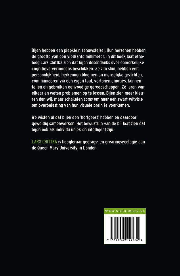 Bijen hebben een piepklein zenuwstelsel. Hun hersenen hebben de grootte van een vierkante millimeter. In dit boek laat etholoog Lars Chittka zien dat bijen desondanks over opmerkelijke cognitieve vermogens beschikken. Ze zijn slim, hebben een persoonlijkheid, herkennen bloemen en menselijke gezichten, communiceren via een eigen taal, vertonen emoties, kunnen tellen en gebruiken eenvoudige gereedschappen. Ze leren van elkaar en weten problemen op te lossen. Bijen zien meer kleuren dan wij, maar schakelen soms om naar een zwart-witvisie om overbelasting van hun visuele brein te voorkomen.